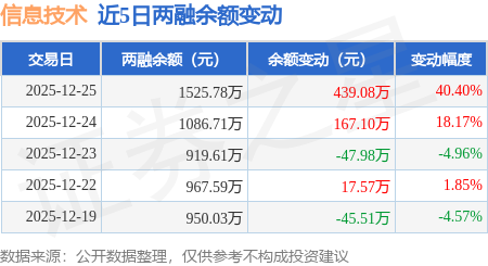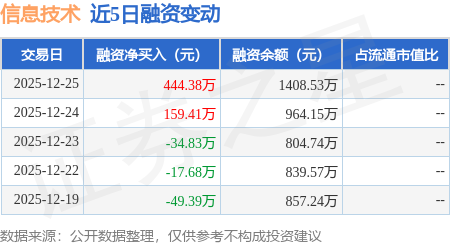 证券之星消息,12月25日,信息技术(159939)融资买入771.2万元,融资偿还326.82万元,融资净买入444.38万元,融资余额1408.53万元,近20个交易日中有12个交易日出现融资净买入。