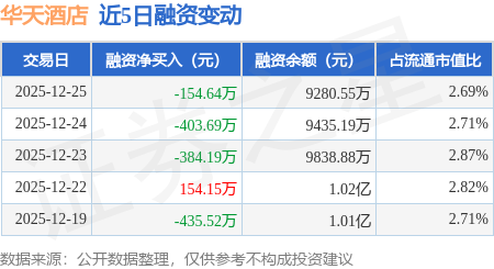 证券之星消息,12月25日,华天酒店(000428)融资买入909.33万元,融资偿还1063.97万元,融资净卖出154.64万元,融资余额9280.55万元,近20个交易日中有12个交易日出现融资净买入。