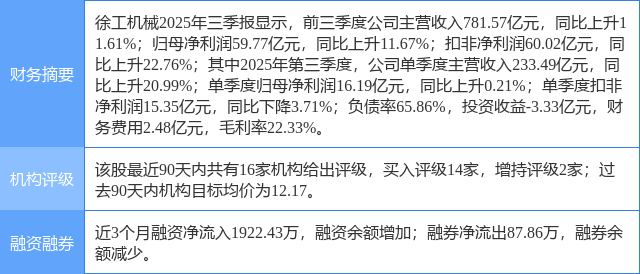 2025年11月2日,国金证券研究员满在朋,倪赵义发布了对徐工机械的研报《收入加速增长,看好未来利润释放》,该研报对徐工机械给出“买入”评级。研报中预计25-27年公司营收为1045.57/1207.71/1390.42亿元、归母净利润为70.15/92.09/115.11亿元,对应PE为18/13/11倍。维持“买入”评级。证券之星数据中心根据近三年发布的研报数据计算,该研报作者对此股的盈利预测准确度为79.6%。