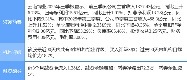 2025年9月30日,民生证券研究员邱祖学,袁浩发布了对云南铜业的研报《公司动态报告:业绩稳健,凉山矿业注入在即》,该研报对云南铜业给出“买入”评级。研报中预计2025-2027年公司实现归母净利润17.79/23.03/28.71亿元,对应2025年9月29日收盘价的PE分别为18/14/11倍,首次覆盖,给予“推荐”评级。证券之星数据中心根据近三年发布的研报数据计算,该研报作者对此股的盈利预测准确度为36.42%。