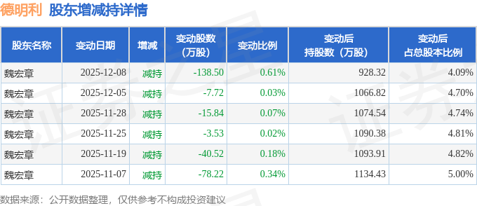 该股近半年内有股东持股变动,合计净减持284.33万股,股东增减持明细如下表: