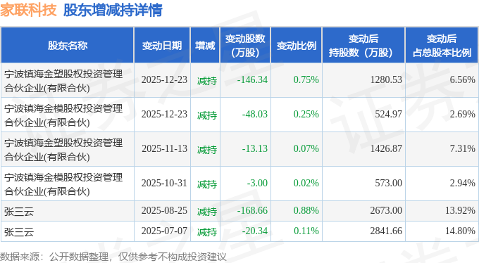 截至2025年12月26日收盘,家联科技(301193)报收于22.59元,下跌1.22%,换手率2.26%,成交量3.12万手,成交额7080.8万元。