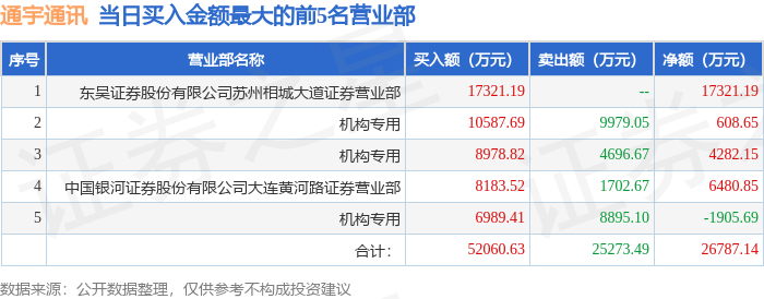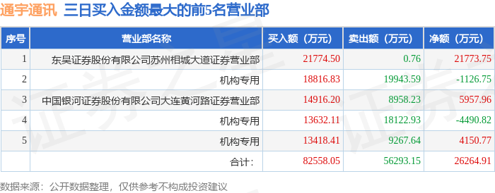 从龙虎榜公布的三日买卖数据来看,机构合计净卖出9836.24万元。陈小群等知名游资榜上有名。(知名游资陈小群一般指中国银河证券股份有限公司大连黄河路证券营业部席位,根据市场资料整理,仅供参考)