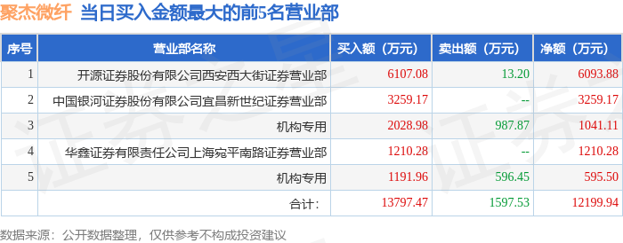 证券之星消息,沪深交易所2025年12月26日公布的交易公开信息显示,聚杰微纤(300819)因日涨幅达到15%的前5只证券登上龙虎榜。此次是近5个交易日内第1次上榜。
