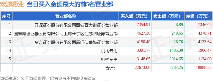 证券之星消息,沪深交易所2025年12月26日公布的交易公开信息显示,宏源药业(301246)因日涨幅达到15%的前5只证券登上龙虎榜。此次是近5个交易日内第1次上榜。