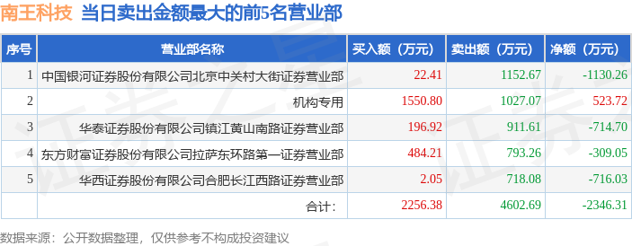 证券之星消息,沪深交易所2025年12月26日公布的交易公开信息显示,南王科技(301355)因日换手率达到30%的前5只证券登上龙虎榜。此次是近5个交易日内第3次上榜。