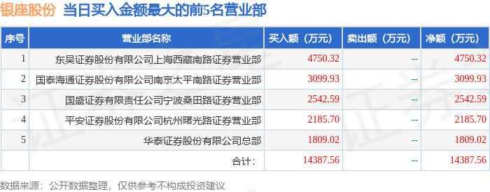 从龙虎榜公布的当日买卖数据来看,作手新一、宁波桑田路等知名游资榜上有名。(知名游资作手新一一般指国泰海通证券股份有限公司南京太平南路证券营业部席位、知名游资宁波桑田路一般指国盛证券有限责任公司宁波桑田路证券营业部席位,根据市场资料整理,仅供参考)