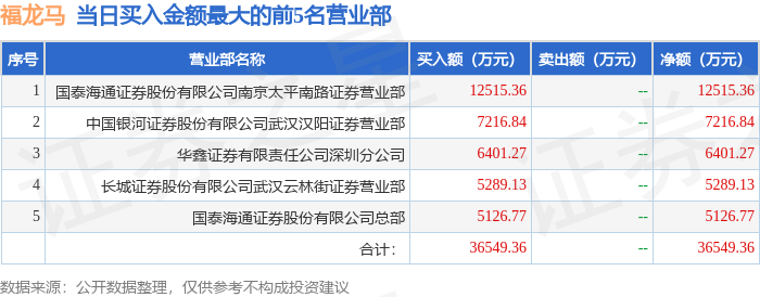从龙虎榜公布的当日买卖数据来看,作手新一等知名游资榜上有名。(知名游资作手新一一般指国泰海通证券股份有限公司南京太平南路证券营业部席位,根据市场资料整理,仅供参考)