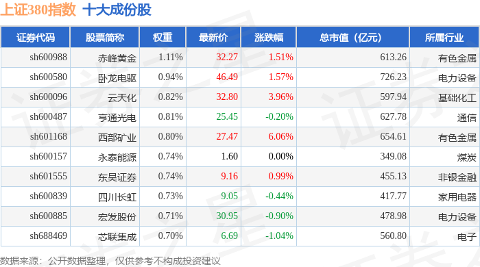 证券之星消息,12月26日,上证380(000009)指数报收于6585.81点,涨0.63%,成交2227.85亿元,换手率1.71%。当日该指数成份股中,上涨的有196家,中复神鹰以12.56%的涨幅领涨,下跌的有169家,燕东微以4.73%的跌幅领跌。