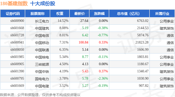 180基建(000025)指数十大成份股详情如下: