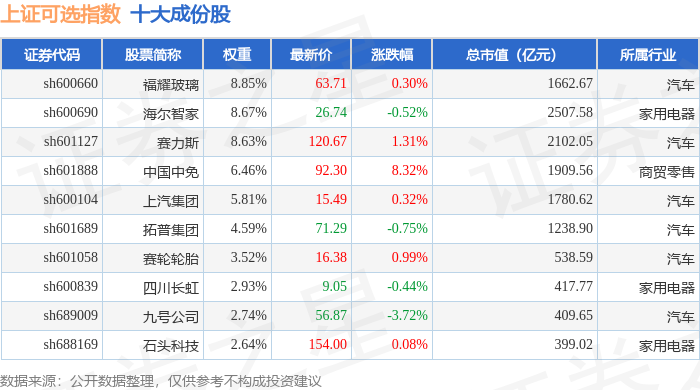 证券之星消息,12月26日,上证可选(000035)指数报收于2989.7点,涨0.63%,成交362.28亿元,换手率1.56%。当日该指数成份股中,上涨的有26家,中国中免以8.32%的涨幅领涨,下跌的有23家,九号公司以3.72%的跌幅领跌。