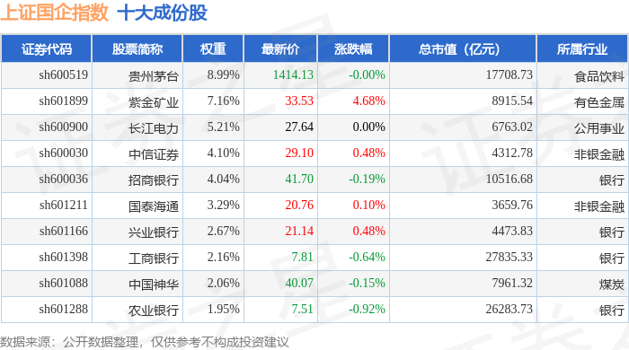 证券之星消息,12月26日,上证国企(000056)指数报收于1250.59点,涨0.52%,成交951.18亿元,换手率0.26%。当日该指数成份股中,上涨的有39家,江西铜业以10.0%的涨幅领涨,下跌的有55家,小商品城以3.72%的跌幅领跌。