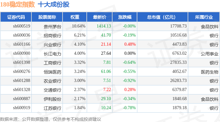 证券之星消息,12月26日,180稳定(000125)指数报收于11825.2点,跌0.18%,成交566.31亿元,换手率0.19%。当日该指数成份股中,上涨的有26家,桂冠电力以3.55%的涨幅领涨,下跌的有56家,华鲁恒升以2.44%的跌幅领跌。