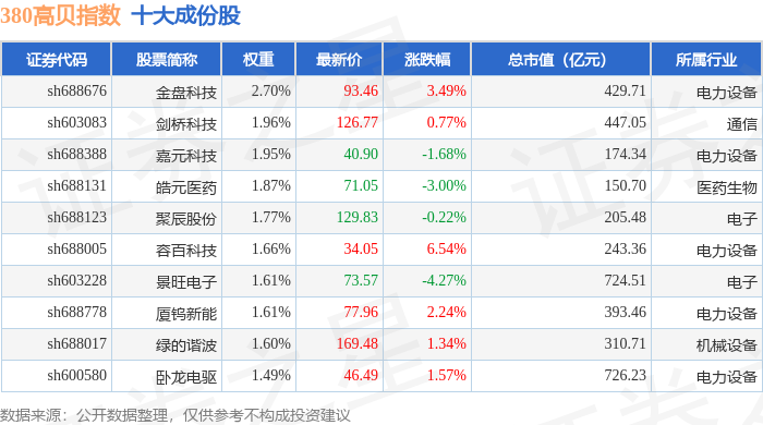 证券之星消息,12月26日,380高贝(000137)指数报收于5920.94点,涨0.42%,成交837.69亿元,换手率3.38%。当日该指数成份股中,上涨的有52家,中复神鹰以12.56%的涨幅领涨,下跌的有47家,燕东微以4.73%的跌幅领跌。