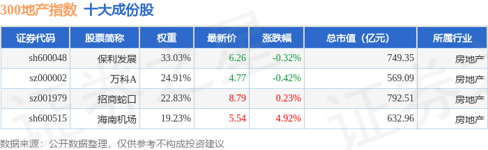300地产(000952)指数十大成份股详情如下: