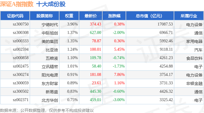 深证A指(399107)指数十大成份股详情如下: