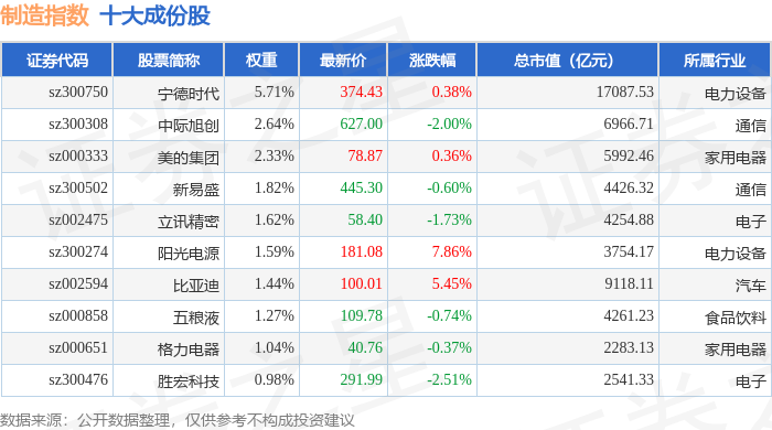 资金流向方面,制造指数(399233)成份股当日主力资金净流出合计131.77亿元,游资资金净流出合计56.38亿元,散户资金净流入合计188.15亿元。成份股资金流向详情见下表: