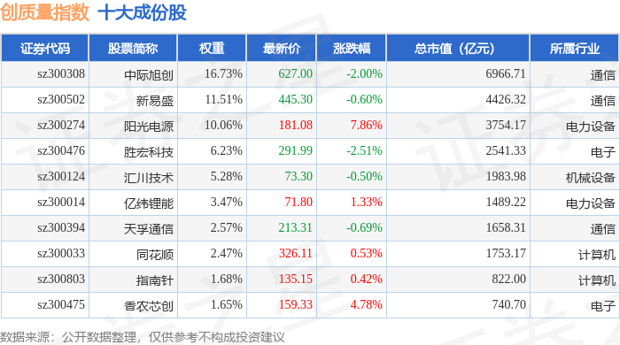 证券之星消息,12月26日,创质量(399269)指数报收于8324.78点,涨0.51%,成交1445.85亿元,换手率3.59%。当日该指数成份股中,上涨的有41家,光威复材以8.43%的涨幅领涨,下跌的有59家,金马游乐以5.87%的跌幅领跌。