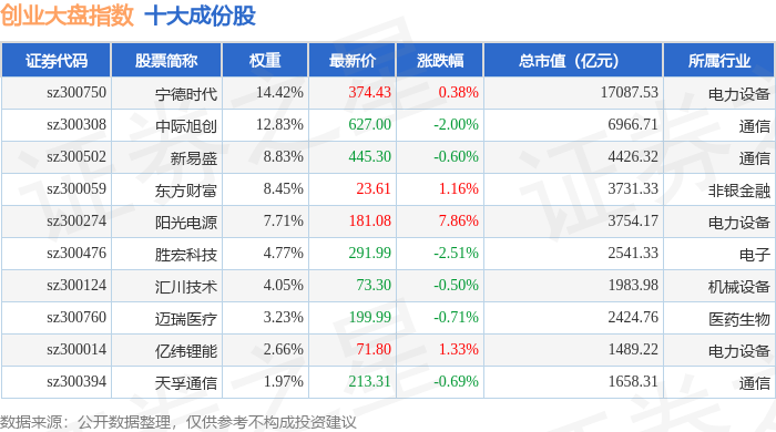 创业大盘(399293)指数十大成份股详情如下: