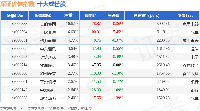 深证价值(399348)指数十大成份股详情如下: