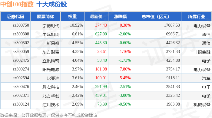 资金流向方面,中创100(399612)指数成份股当日主力资金净流出合计36.09亿元,游资资金净流入合计12.0亿元,散户资金净流入合计24.09亿元。成份股资金流向详情见下表: