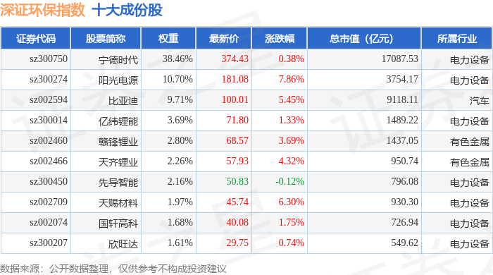 证券之星消息,12月26日,深证环保(399638)指数报收于7603.55点,涨2.15%,成交1099.17亿元,换手率1.96%。当日该指数成份股中,上涨的有28家,恩捷股份以9.1%的涨幅领涨,下跌的有11家,银轮股份以3.55%的跌幅领跌。