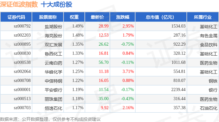 深证低波(399661)指数十大成份股详情如下: