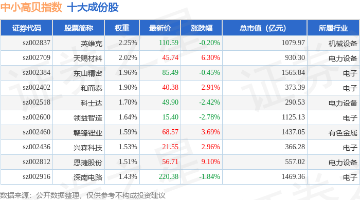 中小高贝(399664)指数十大成份股详情如下: