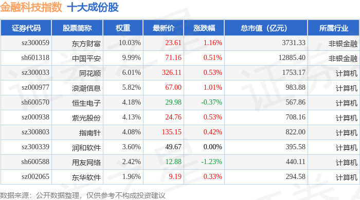 金融科技(399699)指数十大成份股详情如下: