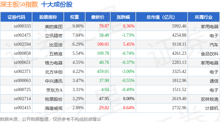证券之星消息,12月26日,深主板50(399750)指数报收于8927.82点,涨0.19%,成交594.46亿元,换手率0.79%。当日该指数成份股中,上涨的有21家,比亚迪以5.45%的涨幅领涨,下跌的有27家,科伦药业以3.94%的跌幅领跌。