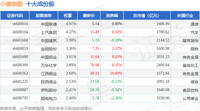 证券之星消息,12月26日,小康指数(399901)报收于6375.05点,涨0.53%,成交969.41亿元,换手率0.53%。当日该指数成份股中,上涨的有43家,江西铜业以10.0%的涨幅领涨,下跌的有51家,华鲁恒升以2.44%的跌幅领跌。