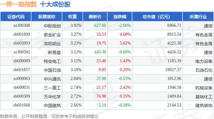 资金流向方面,一带一路(399991)指数成份股当日主力资金净流出合计28.5亿元,游资资金净流入合计21.36亿元,散户资金净流入合计7.13亿元。成份股资金流向详情见下表: