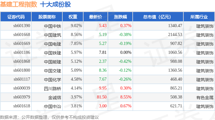 资金流向方面,基建工程(399995)指数成份股当日主力资金净流入合计3.49亿元,游资资金净流出合计2.71亿元,散户资金净流出合计7770.96万元。成份股资金流向详情见下表: