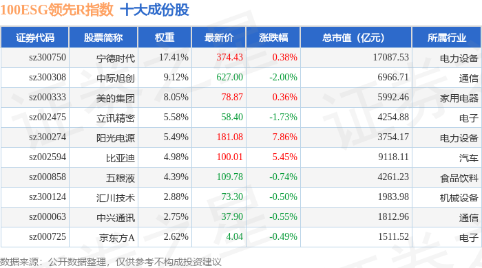 100ESG领先R(470030)指数十大成份股详情如下: