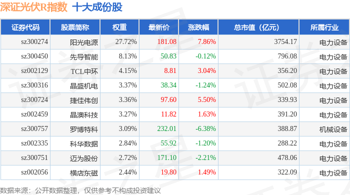 证券之星消息,12月26日,深证光伏R(470035)指数报收于4110.47点,涨1.67%,成交564.18亿元,换手率4.2%。当日该指数成份股中,上涨的有27家,晓程科技以10.83%的涨幅领涨,下跌的有19家,罗博特科以6.38%的跌幅领跌。