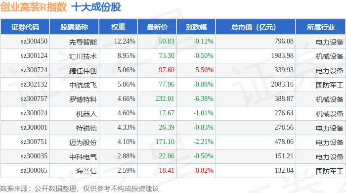 证券之星消息,12月26日,创业高装R(470040)指数报收于4532.18点,跌0.32%,成交412.72亿元,换手率6.1%。当日该指数成份股中,上涨的有15家,广联航空以12.37%的涨幅领涨,下跌的有35家,罗博特科以6.38%的跌幅领跌。