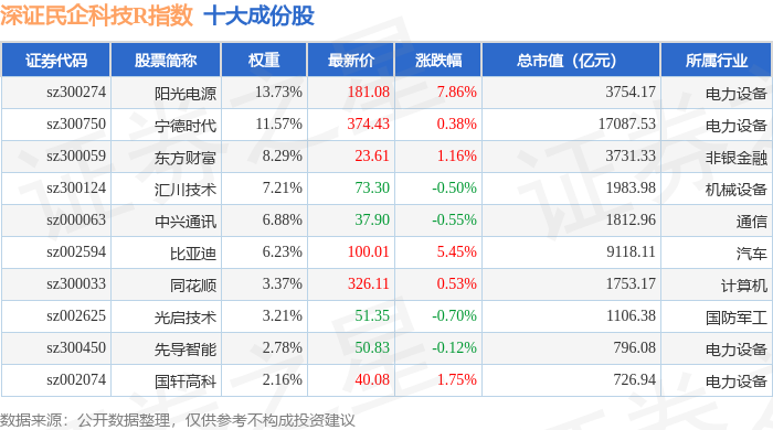 深证民企科技R(470059)指数十大成份股详情如下: