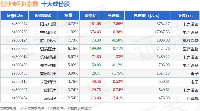 资金流向方面,创业专利R(470068)指数成份股当日主力资金净流入合计13.16亿元,游资资金净流出合计14.95亿元,散户资金净流入合计1.79亿元。成份股资金流向详情见下表: