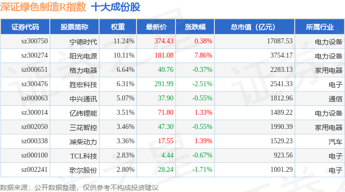 深证绿色制造R(470069)指数十大成份股详情如下: