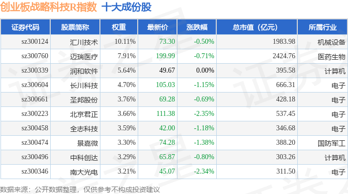 创业板战略科技R(471004)指数十大成份股详情如下: