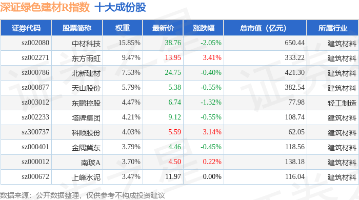 深证绿色建材R(470077)指数十大成份股详情如下: