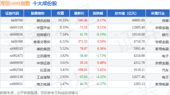 证券之星消息,12月26日,湾创100R(480001)指数报收于1880.53点,涨0.1%,成交1406.62亿元,换手率1.3%。当日该指数成份股中,上涨的有51家,天赐材料以6.3%的涨幅领涨,下跌的有47家,麦格米特以4.87%的跌幅领跌。