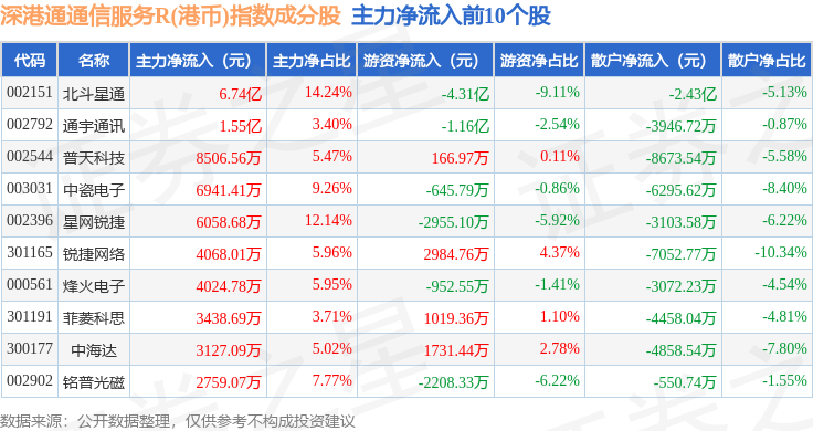 资金流向方面,深港通通信服务R(港币)(483034)指数成份股当日主力资金净流出合计52.16亿元,游资资金净流入合计26.47亿元,散户资金净流入合计25.7亿元。成份股资金流向详情见下表: