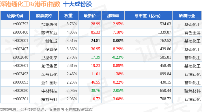 深港通化工R(港币)(483064)指数十大成份股详情如下:
