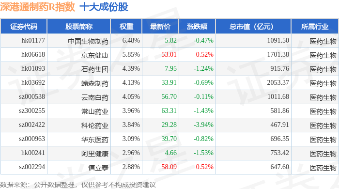 近10日内深港通制药R(483079)指数成份股做了调整,新纳入了9只股票。