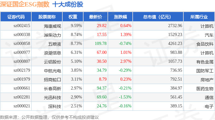 证券之星消息,12月26日,深证国企ESG(970055)指数报收于1402.95点,涨0.76%,成交337.33亿元,换手率1.43%。当日该指数成份股中,上涨的有26家,中核科技以10.02%的涨幅领涨,下跌的有21家,光迅科技以1.53%的跌幅领跌。