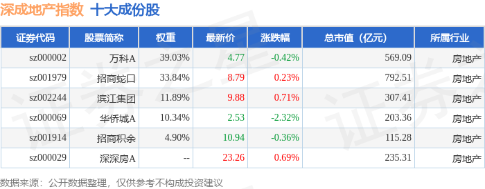 深成地产(971001)指数十大成份股详情如下: