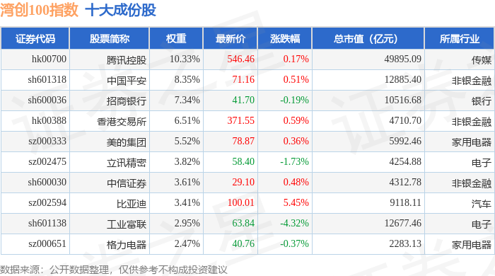 证券之星消息,12月26日,湾创100(980001)指数报收于1533.13点,涨0.1%,成交1406.62亿元,换手率1.3%。当日该指数成份股中,上涨的有51家,天赐材料以6.3%的涨幅领涨,下跌的有47家,麦格米特以4.87%的跌幅领跌。