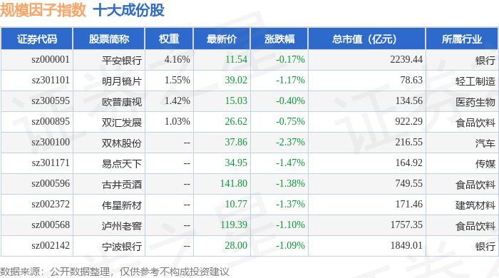 规模因子(980055)指数十大成份股详情如下: