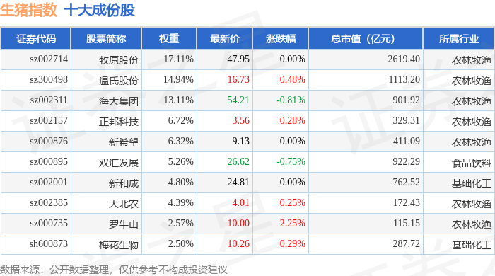 资金流向方面,生猪指数(980073)成份股当日主力资金净流出合计3.95亿元,游资资金净流入合计9125.19万元,散户资金净流入合计3.04亿元。成份股资金流向详情见下表: